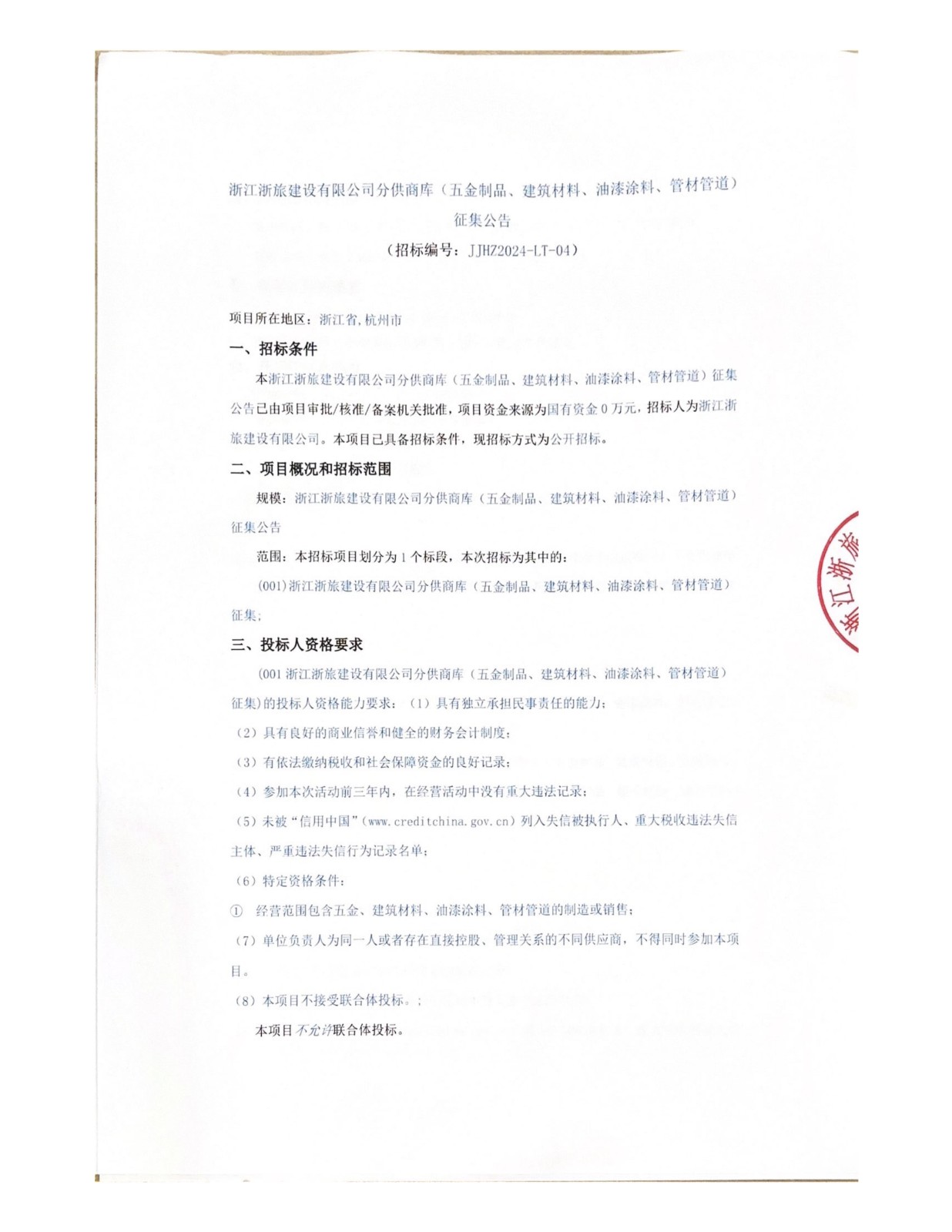 浙江浙旅建設(shè)有限公司分供商庫(鋼結(jié)構(gòu))征集公告