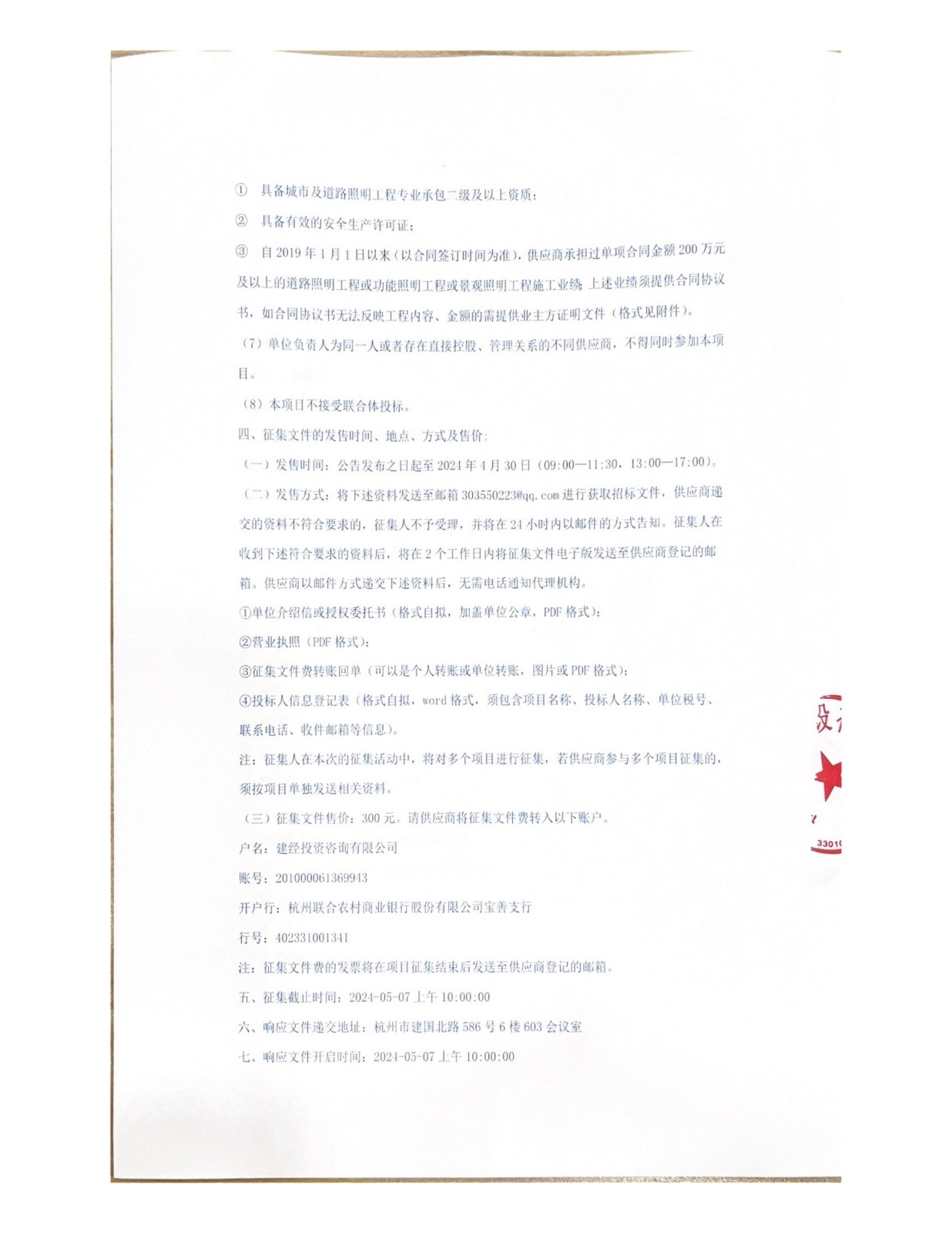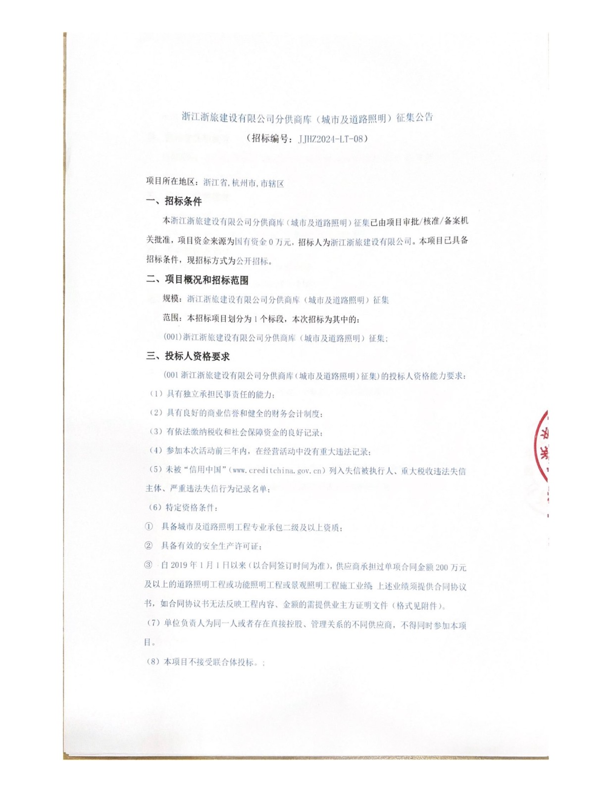 浙江浙旅建設有限公司分供商庫(城市及道路照明)征集公告