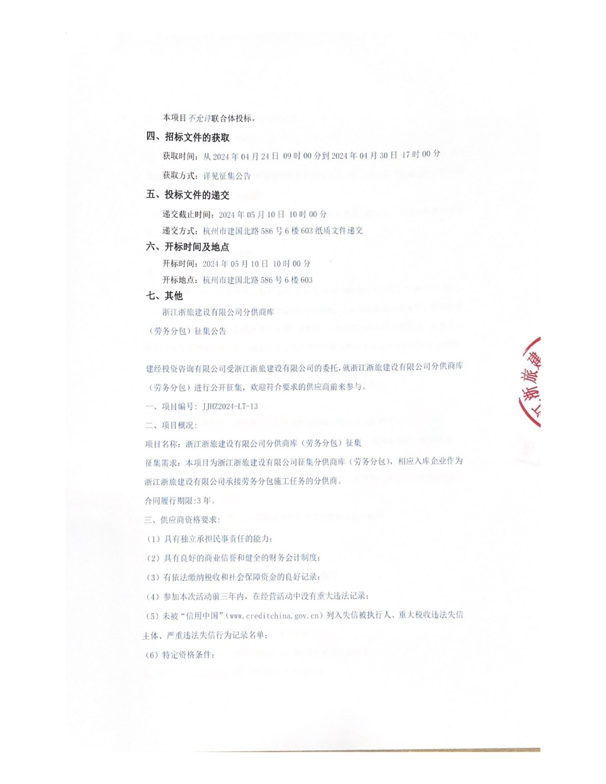 浙江浙旅建設(shè)有限公司分供商庫(kù)(勞務(wù)分包)征集公告