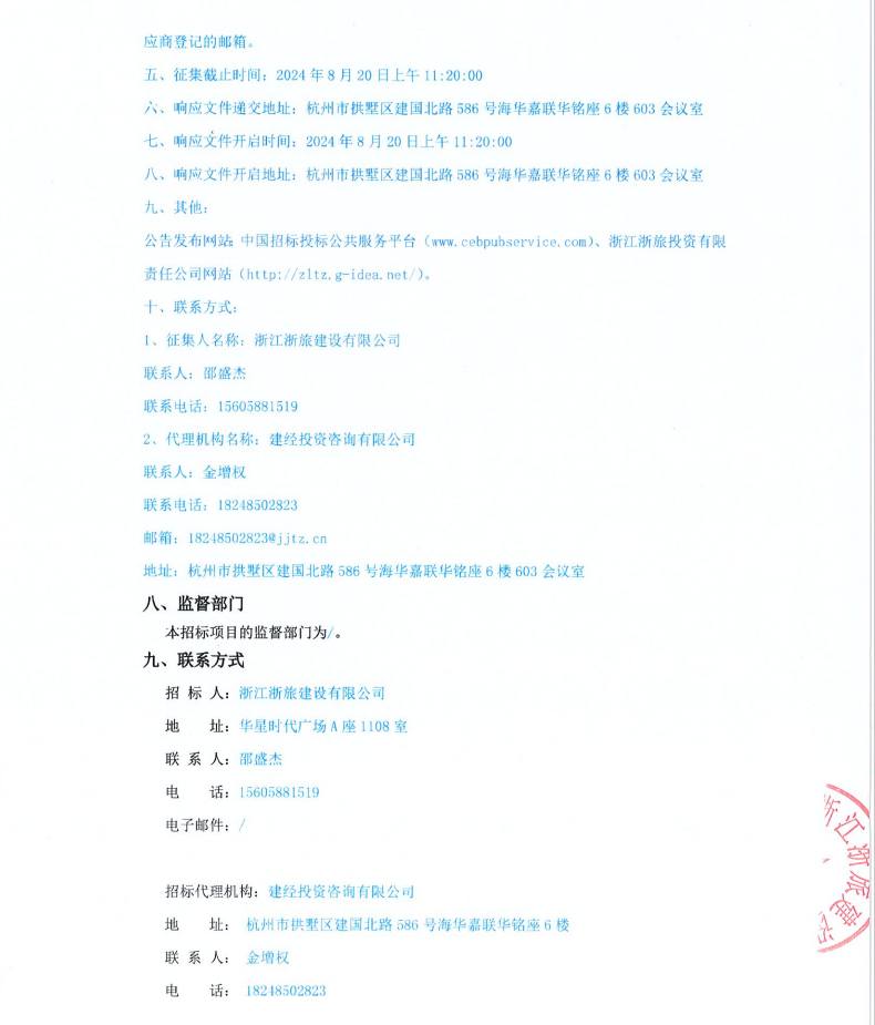 浙江浙旅建設(shè)有限公司分供商庫(智慧旅游)補(bǔ)充征集公告