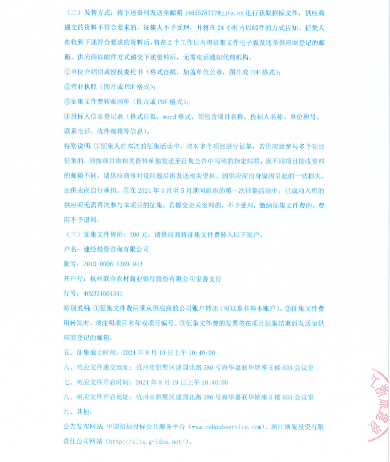 浙江浙旅建設(shè)有限公司分供商庫(智慧旅游)補充征集公告