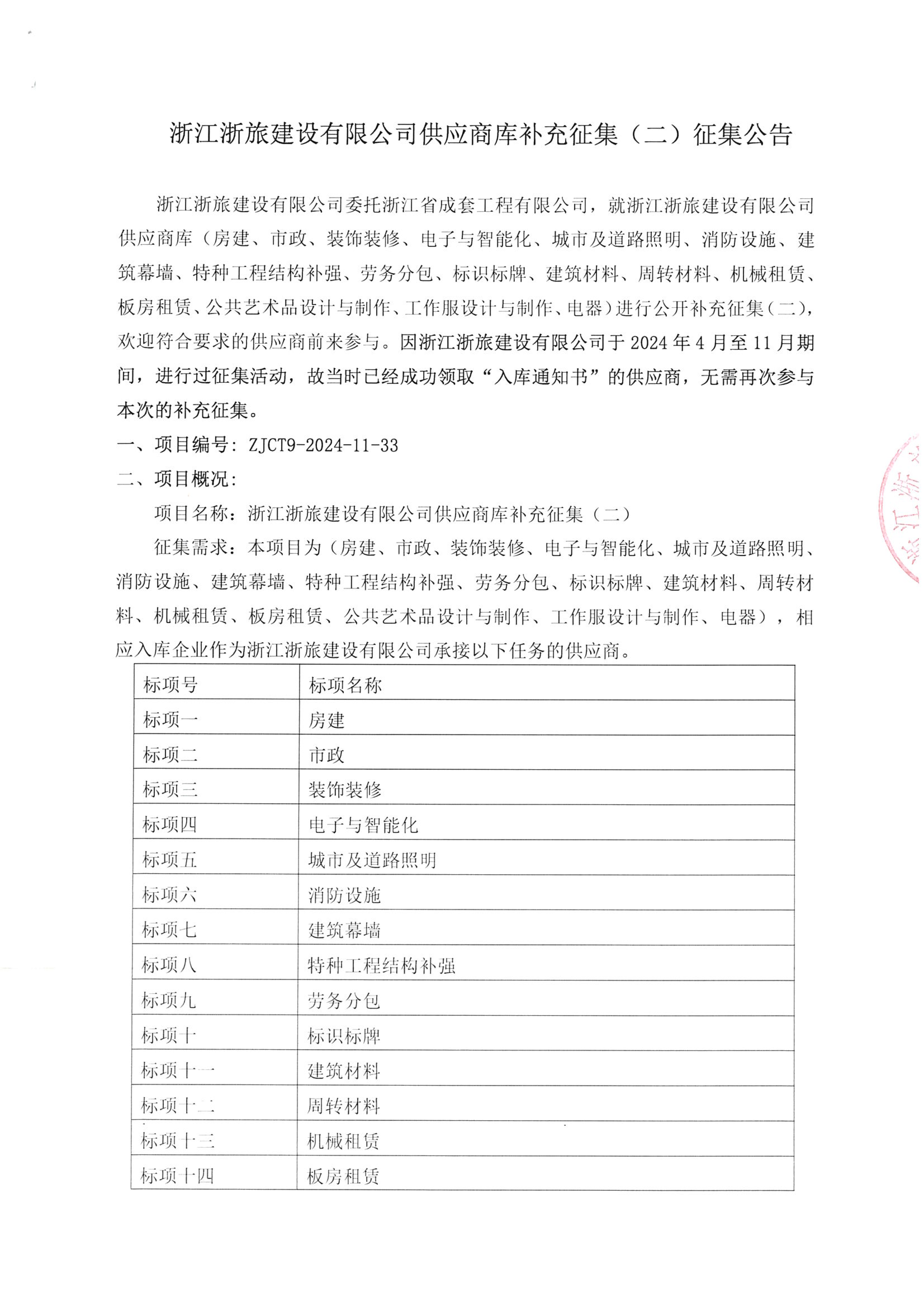 浙江浙旅建設(shè)有限公司供應(yīng)商庫(kù)補(bǔ)充征集(二)征集公告