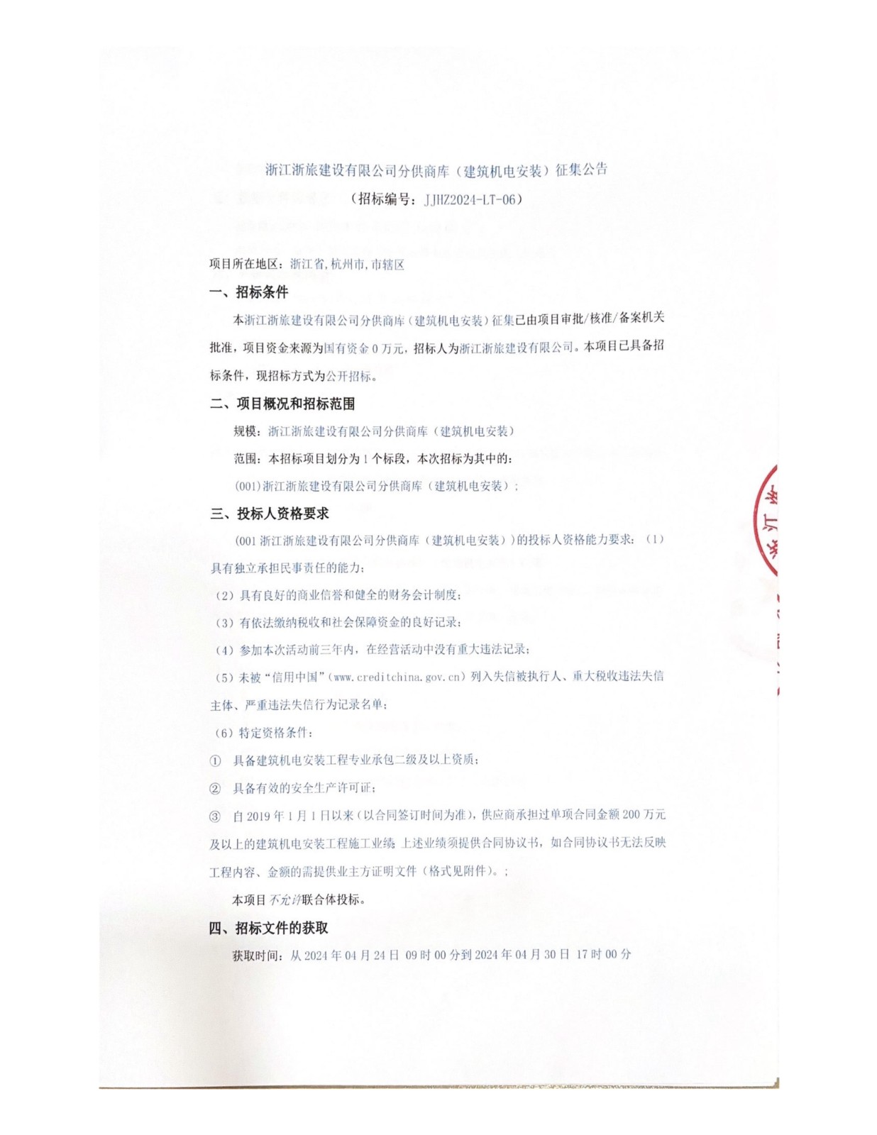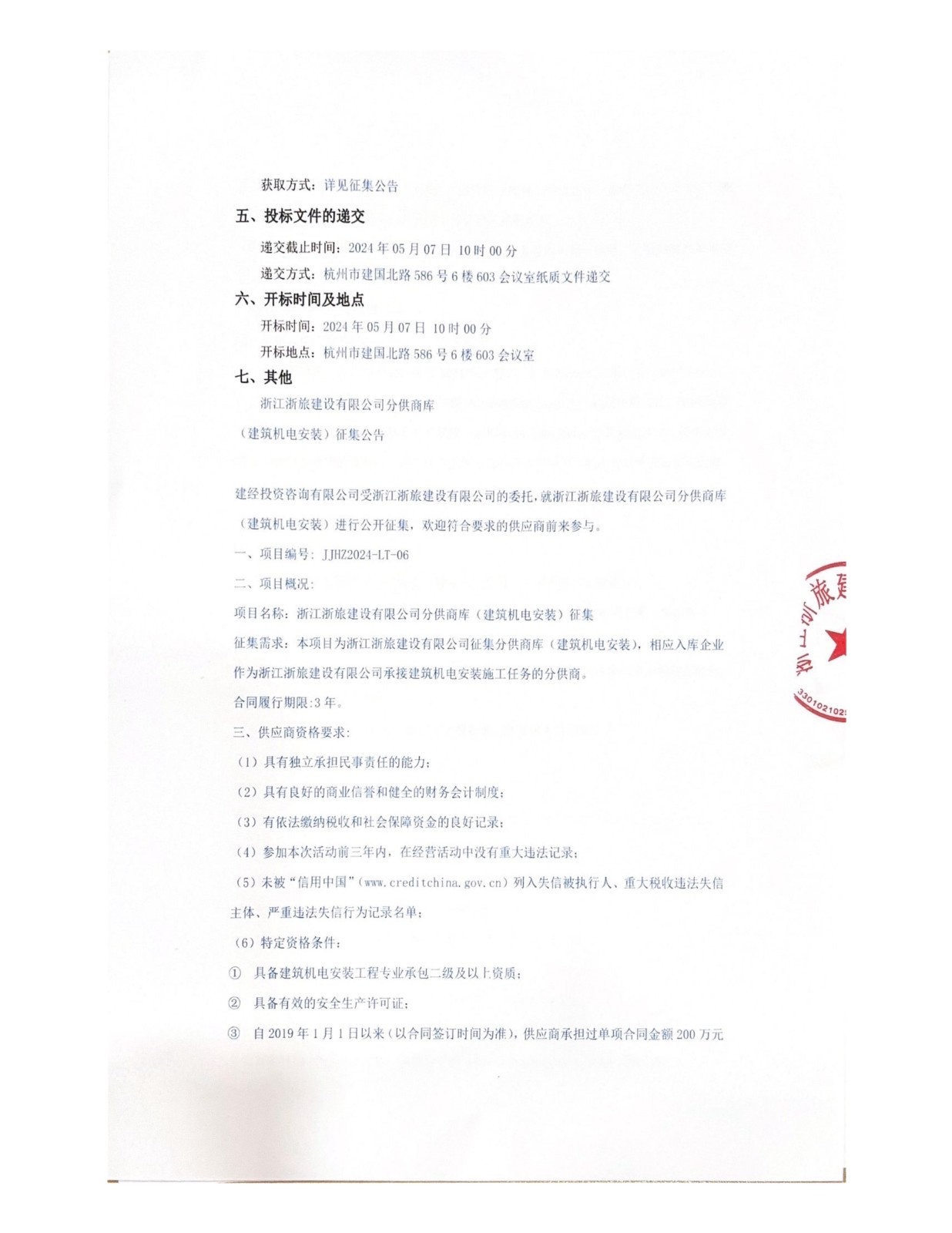 浙江浙旅建設(shè)有限公司分供商庫(建筑機(jī)電安裝)征集公告